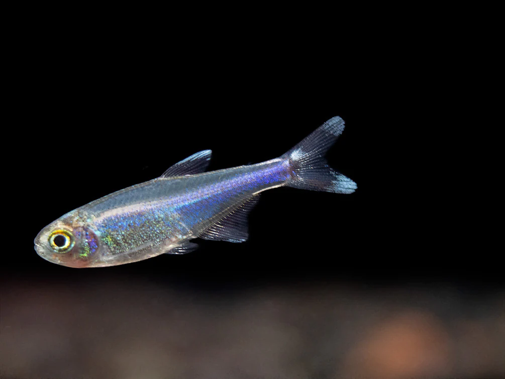 THE BLUE KING TETRA IS A FRESHWATER FISH OF THE TETRA FAMILY, NATIVE TO THE STREAMS AND RIVERS OF IQUITOS, PERU. THEY ARE A POPULAR SPECIES AMONG AQUARISTS FOR THEIR VIBRANT BLUE TO BLUISH-GREEN COLOR, SMALL SIZE, LIVELY TEMPERAMENT, EASY CARE LEVEL, AND ABILITY TO BREED IN THE TANK.