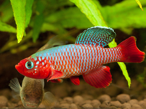 Rubripinnis Kilifish is found in transitory water-filled depressions in coastal Tanzania. These pools can be heavily vegetated and the water depth gradually decreases as the dry season progresses. This beautiful species is an annual killifish, which means it only lives up to a year at most – so the need to reproduce is of high importance. As such, the young fishes develop very quickly in order to fulfil this need (sexual maturity is reached in a matter of weeks), and the resultant eggs are able to survive periods of drought in the substrate, hatching when the rainy season returns and thus providing a new generation to continue the cycle.